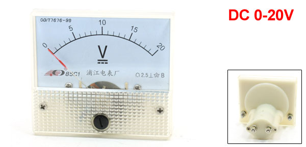 Product Name Analog Voltmeter Model 85C1 Measuring Voltage Range DC 0-20V Accuracy Class 2.5 Meter Face Size(Approx) 6.5 x 5.7 x 1.1cm/2.6" x 2.2" x 0.43"(L*W*T) Thread Dia. 3mm/ 0.12" Overall Depth 5.7cm / 2.2" Color Clear, Beige Weight 78g Package Content 1 x Analog Voltmeter