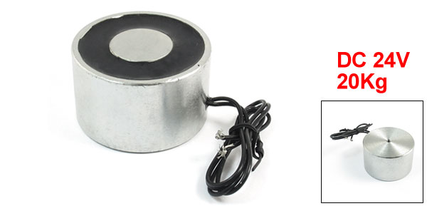 Product Name Electromagnet Type Sucked Type Material Metal, Electronic Parts Rated Voltage DC 24V Rated Current 5A Attraction 20Kg/44lb Power On Type Continuous Overall Size 50 x 30mm / 2" x 1.2"(Dia.*T)