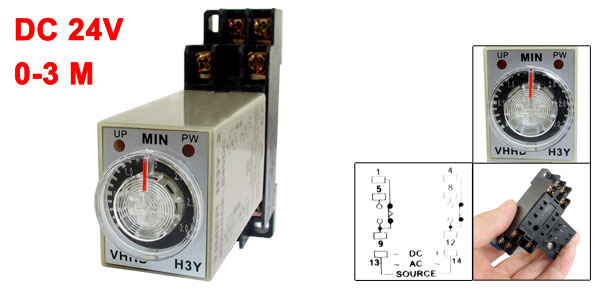 DC 24V 0-3 Minute 3 Meters Timer Power On Delay Time Relay 8 Pin H3Y-2 w Socket