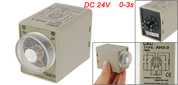 Product Name Time Relay Type AH3-3 Rated Voltage DC 24V Frequency 50/60 Hz Contact 5A 250V AC Resistive Load Time Range 0-3s Size (Approx.) 8 x 4.8 x 3.8cm/3.1'' x 1.9'' x 1.5'' (L*W*T) Color As Picture Shown Weight 84g Package Content 1 x Time Relay - Reviews