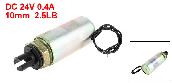 Product Name Solenoid Electromagnet Rated Voltage DC 24V Rated Current 0.4A Force& Stroke 10mm, 2.5LB / 1.1Kg