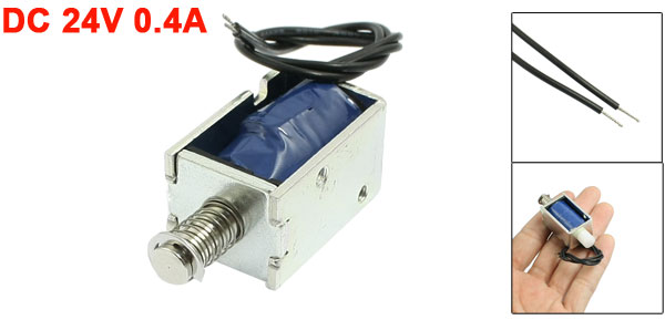 Product Name DC Solenoid Electromagnet Material Metal, Electronic Parts Rated Voltage DC 24V Current 0.4A Action Form Push Stroke & Suction Force 5mm, 50gf Plunger Diameter 6mm / 0.236" Overall Size 49 x 19 x 16mm / 1.9" x 0.75'' x 0.63" (L*W*T) Wire Length 18cm / 7" Net Weight 46g Package Content 1 x DC Solenoid Electromagnet - Reviews