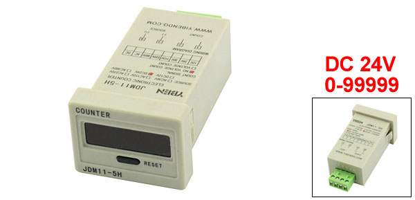 Product Name Accumulating Counter Model JDM11-5H Counting Range 0-99999 Number of Digits 5 Power DC 24V Count Singal No Voltage Count Total Size 9.3 x 4.5 x 3.5cm/3.7" x 1.8" x 1.4"(L*W*T) Reset mode Pressing Type(Locking) Main Material Plastic, Electronic Parts, Metal Main Color Gray Weight 57g Package Content 1 x Accumulating Counter - Reviews