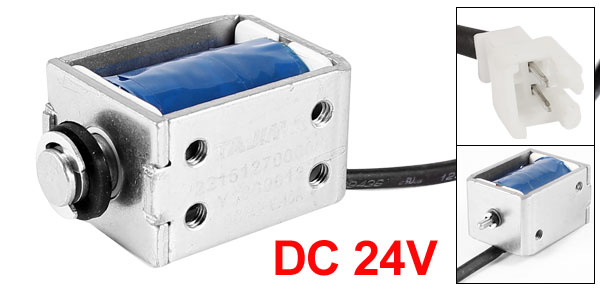 Product Name Electromagnet Solenoid Rated DC 24V Type Push Pull Power 2.4W Current 0.1A Force & Stroke 0mm , 20g Body Size 25 x 20 x 17mm/1" x 0.8" x 0.7"(L*W*H) Plunger Hole 2mm/0.08" Wire Length 67cm/26.4" Mounted Hole Dia 2mm/0.08" Mounted Hole Distance 13 x 4.5mm/0.5" x 0.18"(L*W) Material Metal, Electronic Parts Weight 48g Package Content 1 x Electromagnet Solenoid - Reviews