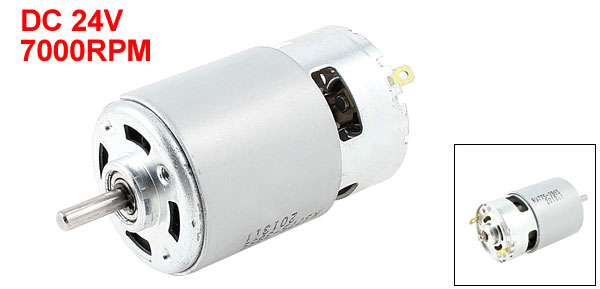 Product Name DC Motor Type Ball Bearing, Cooling Fan Rated Voltage DC 24V Rated Current 0.31A No-load Speed 7000RPM Shaft Dia 5mm / 0.2" Shaft Length 98mm/3.9" Body Size 77 x 44mm / 3" x 1.7" (L*D) Total Length 98mm / 3.9" Main Color Silver Tone Material Metal, Plastic Weight 233g Package 1 x DC Motors - Reviews
