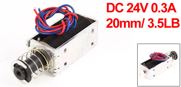 Product Name Solenoid Electromagnet Rated Voltage DC 24V Rated Current 0.3A Force& Stroke 20mm, 3.5LB / 1.6Kg