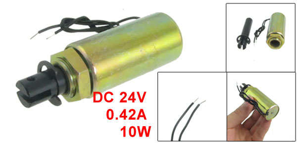 Product Name Tubular Solenoid Material Metal, Electronic Parts Rated Voltage DC 24V Current 0.42A Power 10W Action Form Pull Type Rated Stroke & Force 2mm, 1.15Kg(Primary)