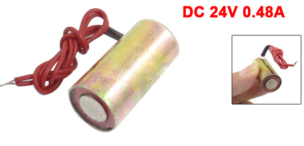 Product Name DC Solenoid Electromagnet Model 1632P-15B35 Rated Voltage DC 24V Rated Current 0.48A Rated Force 0mm, 5kg Cylinder Size(Approx) 3.2 x 1.6cm / 1.3" x 0.64" (H*D) Cable Length(Approx) 21cm / 8.3" (Each) External Material Metal, Electronic Parts Main Color Golden Tone Weight 36g Package Content 1 x DC Solenoid Electromagnet - Reviews