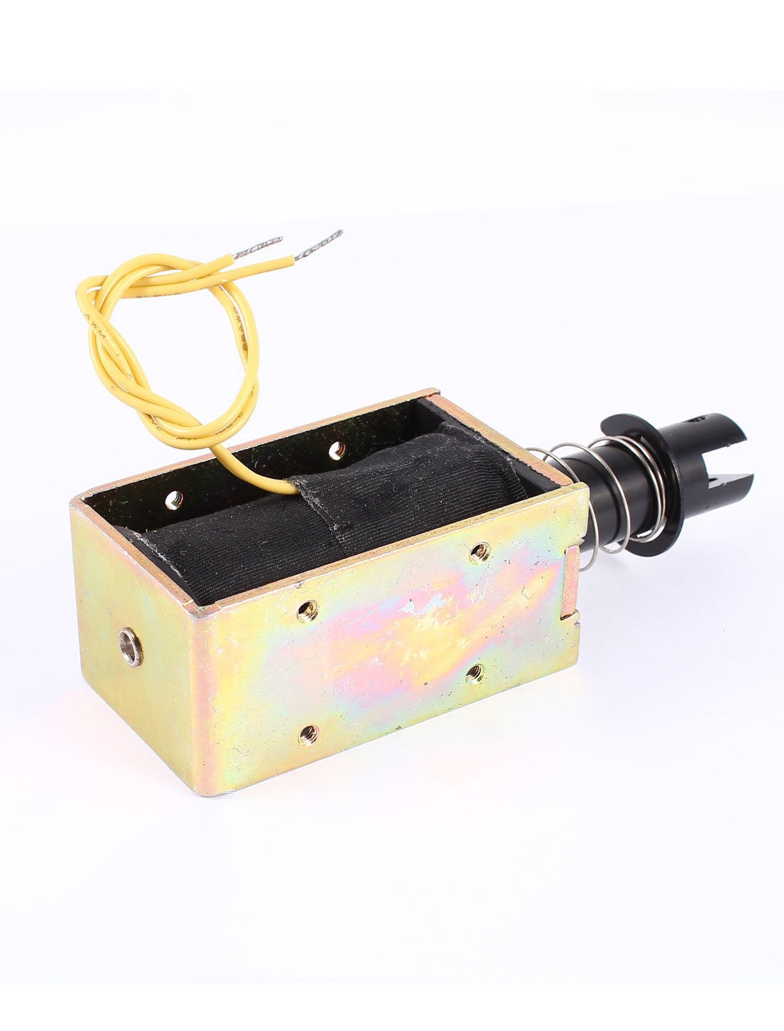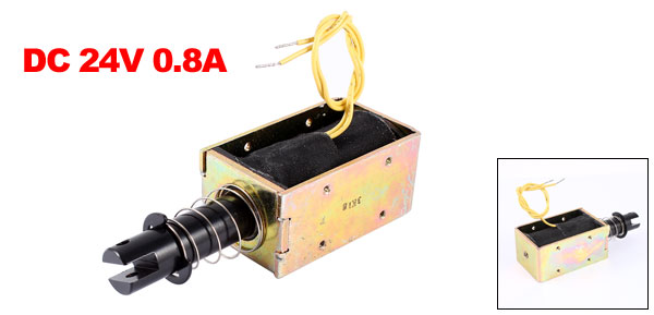 Product Name DC Solenoid Electromagnet Material Metal, Electronic Parts Rated Voltage Current DC 24V 0.8A Type Pull Force, Stroke 5.1N / 0.5Kg, 20mm Body Size 65 x 38 x 30mm/2.6'' x 1.5'' x 1.2''(L*W*H) Plunger Bar Size 15 x 18mm/0.6'' x 0.7'' (D * L) Cable Length 13cm/5.1'' Color Brass Tone, Black Weight 349g Package Content 1 x DC Solenoid Electromagnet - Reviews