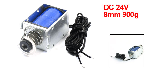 Product Name Solenoid Electromagnet Rated Voltage & Current DC 24V 0.96A Power 23.04W Action Form Pull Type Stroke & Force 8mm 900g