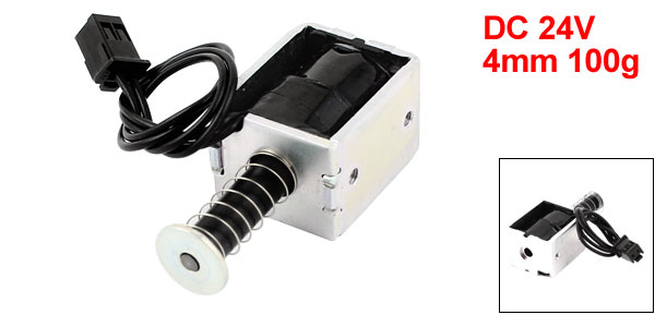 Main Color Silver Tone, Black Brand DMiotech Country of Manufacture CHINA Cable Length 14cm/ 5.5" Model 0625S-24V153 Action Form Pull Push Type Stroke 4mm Connection Rates 25% Material Metal, Electronic Parts Force 100g Net Weight 40g Rated Voltage DC 24V Package Content 1 x DC Solenoid Electromagnet Plunger Size 41 x 6mm/ 1.6" x 0.24"(L*D) Body Size 25 x 20 x 16mm/ 1" x 0.8" x 0.6"(L*W*H) - Reviews