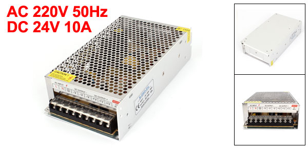 DetailsDC 24V 10A 250W LED Strip Light Aluminium Shell Switching Power Supply Converter  Main Color Silver Tone Input AC 220V 50Hz Brand DMiotech Net Weight 625g Country of Manufacture CHINA Model S-250-24 Package Content 1 x LED Switching Power Supply Power 250W Material Aluminium Output DC 24V 10A Body Size 20 x 11 x 5cm/8" x 4.3" x 2"(L*W*H)