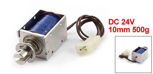 Product Name DC Solenoid Electromagnet Coil Voltage DC 24V Action Form Push Pull Type Rated Stroke & Force 10mm, 500g Connection Rate 10% Body Size 40 x 29 x 24mm / 1.2" x 1.1" x 0.94"(L*W*H) Connector Type JST Plug Cable Length 24cm / 9.4" Plunger Dia. 12mm / 0.47" Plunger Connect Hole Dia. 3mm/0.12" Mounting Hole Dia. 3mm/0.12" Material Metal, Electronic Parts Net Weight 150g Package Content 1 x DC Solenoid Electromagnet - Reviews