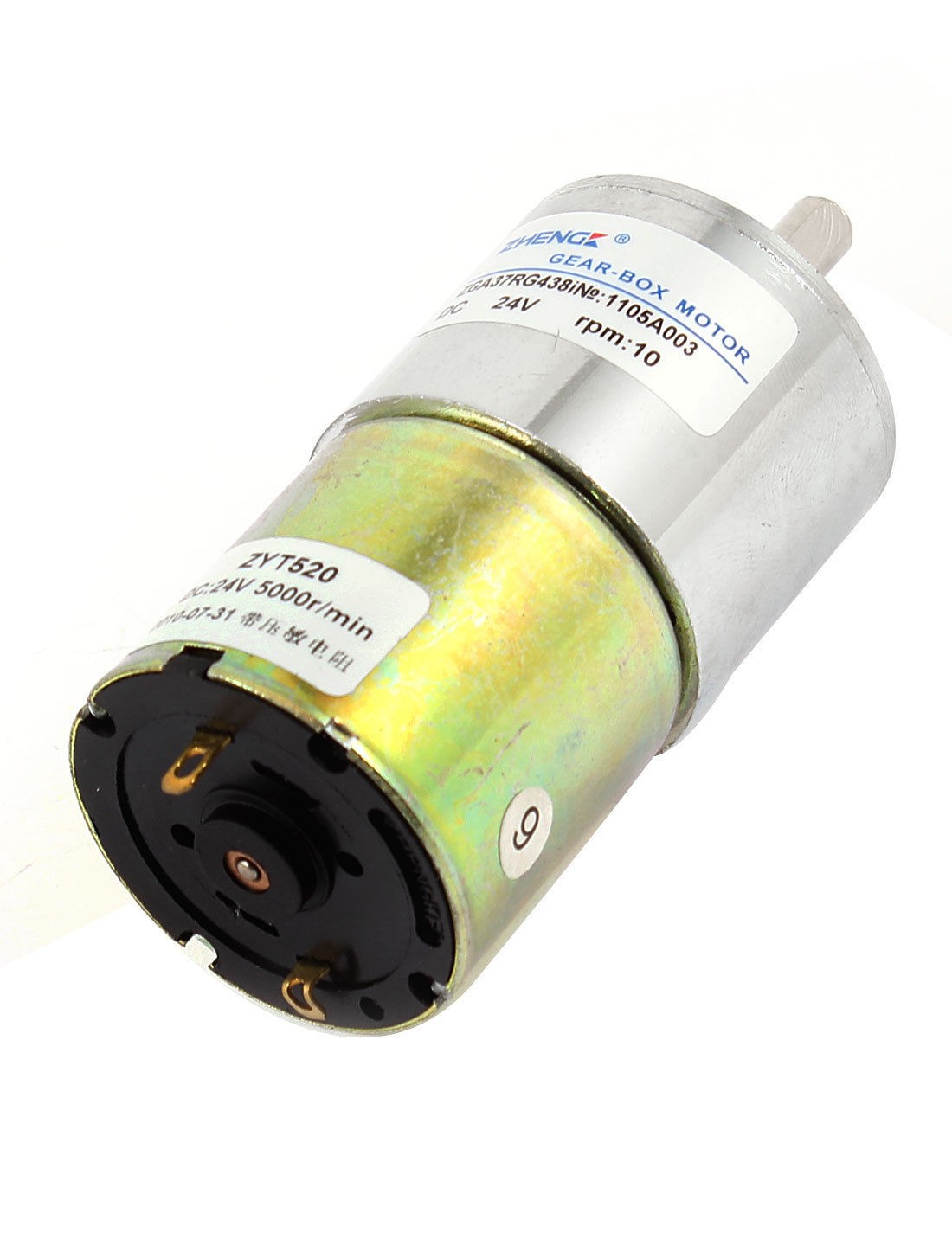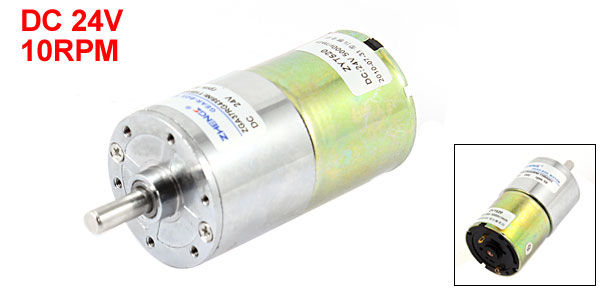 Product Name DC Geared Motor Rated Voltage DC 24V Speed 10 RPM Shaft Diameter 6mm/ 0.24" Motor Part Size 36 x 33mm/1.5" x 2.2"(D*H) Overall Size 37 x 87mm/ 1.5" x 4.1" (D*H) Main Color Silver Tone Material Metal Weight 128g Package 1 x DC Geared Motor - Reviews