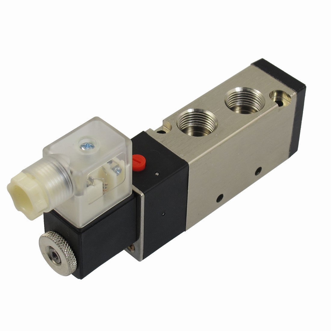 DC 24V 125mA 3W 2 Position 5 Way Electromagnetic Solenoid Valve G1/4" Exhaust