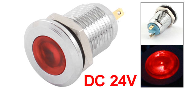 DC 24V 12mm Dia Thread 2-Pin Stainless Steel Red Signal Indicator Light Lamp