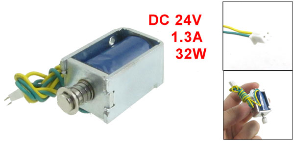 Product Name DC Solenoid Electromagnet Material Metal, Electronic Parts Rated Voltage DC 24V Current 1.3A Power 32W Action Form Push Stroke & Suction Force 2mm, 0.45Kg(Primary)