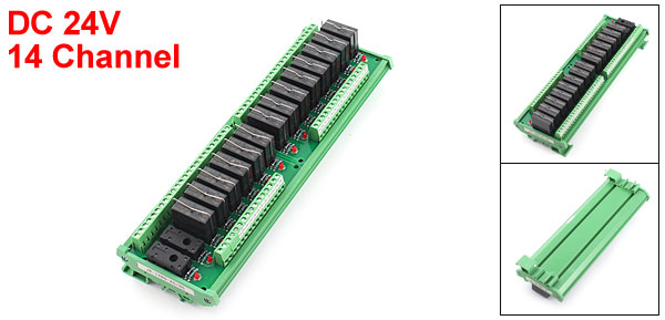 Product Name Relay Output Board Module Relay Type JR-14RG Input DC 24V Output AC/DC 0-250V Relay Model JQX115F Contact Voltage AC 250V 12A Pole Number 14 Channel Overall Size 26.5 x 8.5 x 6.5cm/10.4" x 3.3" x 2.5"(L*W*H) Mounting Type 225mm DIN Rail Mounted Hole Diameter 4mm/ 0.16" Materials Metal, Plastic, Electric Parts Main Color Green, Black Total Weight 645g Net Weight 570g Package Content 1 x Relay Output Board Module - Reviews