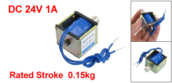 Product Name DC Solenoid Electromagnet Type MR-0830B Rated Voltage DC 24V Rated Current 1A Action Form Push Rated Stroke 10mm, 0.15kg Body Size(Approx) 3.1 x 2.9 x 2.4cm / 0.7 "x 0.6" x 0.5" (L*W*H) Cylinder Size(Approx) 5 x 1cm / 1.9" x 0.4" (L*D) Cable Length(Approx) 23cm / 9.0" (Each) External Material Metal, Electronic Parts Main Color Silver Tone Weight 102g Package Content 1 x DC Solenoid Electromagnet - Reviews
