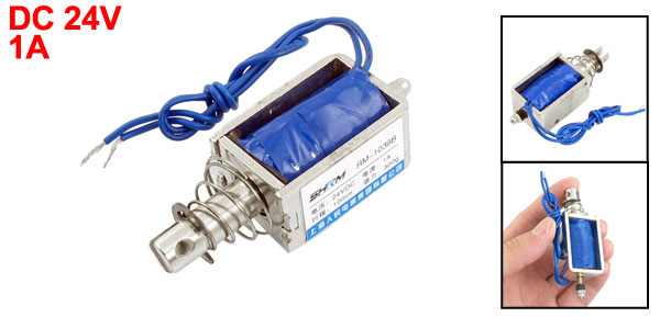 Product Name DC Solenoid Electromagnet Type MR-1039B Rated Voltage DC 24V Rated Current 1A Action Form Push Rated Stroke 10mm, 0.3kg Body Size(Approx) 4 x 2.6 x 2cm / 1.5"x 1" x 0.8" (L*W*H) Cylinder Size(Approx) 7.4 x 0.9cm / 2.9" x 0.3" (L*D) Cable Length(Approx) 22cm / 8.6" (Each) External Material Metal, Electronic Parts Main Color Silver Tone Weight 115g Package Content 1 x DC Solenoid Electromagnet - Reviews