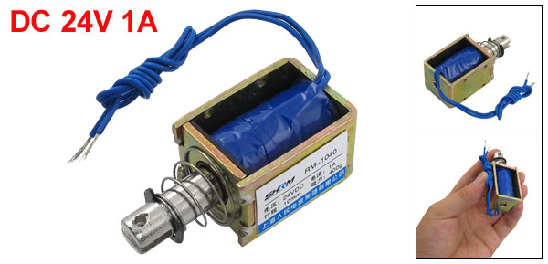 Product Name DC Solenoid Electromagnet Type MR-104 Rated Voltage DC 24V Rated Current 1A Action Form Push Rated Stroke 10mm, 0.4kg Body Size(Approx) 4 x 3 x 2.4cm / 1.5 "x 1.1" x 0.9" (L*W*H) Cylinder Size(Approx) 4.2 x 1cm / 1.6" x 0.4" (L*D) Cable Length(Approx) 22cm / 8.6" (Each) External Material Metal, Electronic Parts Main Color Silver Tone Weight 132g Package Content 1 x DC Solenoid Electromagnet - Reviews