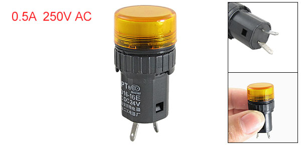 Item Name Indicator Switch w Lamp Input Voltage 250V AC Input Current 0.5A AC Output Voltage 24V DC Output Current 1A DC Button Color Yellow Button Diameter 1.5cm/0.6" Size 4 x 1.7cm/1.57" x 0.7"(L*W) Material Plastic and Metal Weight 7g Package Content 1 x Indicator Switch - Reviews
