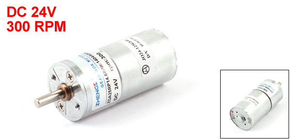 Product Name DC Geared Motor Rated Voltage DC 24V Speed 300 RPM Shaft Diameter 4mm/ 0.16" Shaft Length 12mm/0.47" Motor Part Size 24 x 31mm/0.94" x 1.2"(D*H) Overall Size 25 x 66mm/ 1" x 2.6" (D*H) Main Color Silver Tone Material Metal Weight 85g Package 1 x DC Geared Motor - Reviews