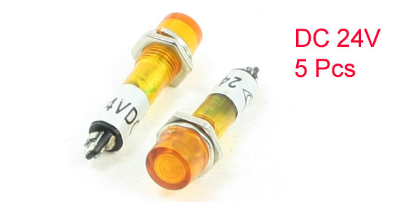 DC 24V 2 Pins Terminals Signal Lamps Orange Indicator Lights 5 Pcs
