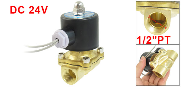 Product Name Solenoid Valve Type 2 Way Material Metal Voltage DC 24V Working Temperature -5 ~ 100 Centigrade Degree Operating Pressure 0 ~10 Kgf/ cm2 Female Thread Diameter 21mm Female Thread Size 1/2"PT Total Size (Approx.) 7.2 x 5 x 10.5cm / 2.8" x 2" x 4.1"(L*W * H) Cable Lenght 21cm/8.3" Color Black, Brass Tone Net Weight 542g Package Content 1 x Solenoid Valve - Reviews