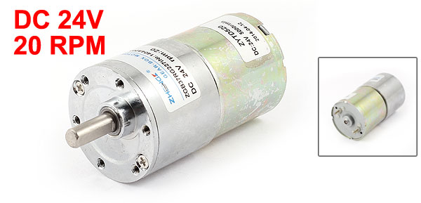 Product Name DC Geared Motor Rated Voltage DC 24V Speed 20 RPM Shaft Diameter 6mm/ 0.24" Motor Part Size 35 x 33mm/0.94" x 1.22"(D*H) Overall Size 37 x 86mm/ 1" x 2.8" (D*H) Main Color Silver Tone, Bronze Tone Material Magnetic Weight 196g Package 1 x DC Geared Motor - Reviews