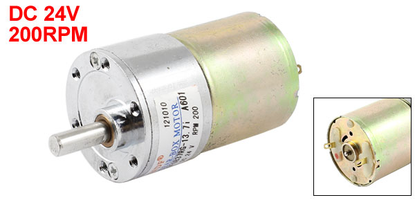 Product Name DC Geared Motor Model DFGB37RG-13.7i Rated Voltage DC 24V Output Speed 200RPM Mounting Screw Hole Diameter 2.2mm/0.09" Gearbox Size 37 x 23mm/1.46" x 0.91"(D*H) Shaft Size 6 x 15mm/ 0.24" x 0.59"(D*L) Body Lenght 58mm/ 2.3" Main Color Bronze Tone, Silver Tone Material Metal, Magnetic Net Weight 194g Package 1 x DC Geared Speed Reduce Motor - Reviews
