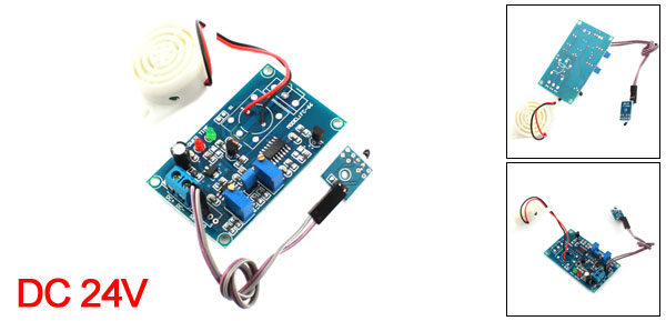 Product Name Thermal Sensor Delay Alarm Module Type Low Temperature Trigger Delay Time 0-20S(0-200S) Coil Voltage DC24V Buzzer Type Piezo Buzzer (Self-drive type) Temperature 80C Fixing Hole Dia 3mm/0.12" Fixing Hole Center Distance 59 x 33mm/2.4" x 1.3"(L*W) Total Size 6.4 x 3.9 x 1.2cm/2.5" x 1.6" x 0.47"(L*W*H) Wire Length 20cm/8" Materials PCB Main Color Green Net Weight 24g Package Content 1 x Thermal Sensor Delay Alarm Module