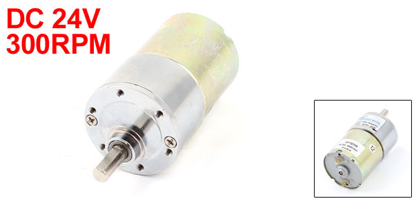 Main Color Silver Tone, Brass Tone Net Weight 185g Total Length 75mm/3inch Rated Voltage DC 24V Country of Manufacture CHINA Package Content 1 x DC Gearbox Motor Motor No-load Speed 300RPM Shaft Size 15 x 6mm/0.6" x 0.24"(L*D) Material Metal Motor Size 33 x 35mm/1.3" x 1.4"(L*D) Pin Number 2 Gear Box Size 23 x 37mm/0.9" x 1.4"(L*D) - Reviews