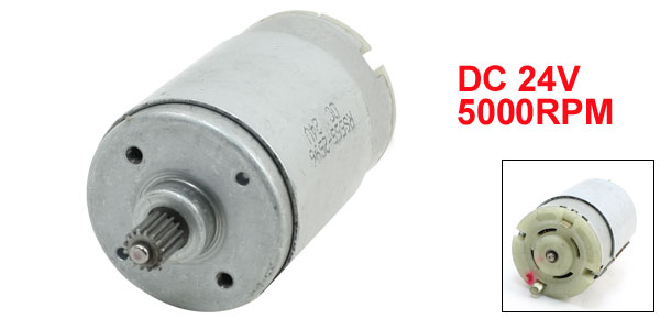 Product Name DC Motor Rated Voltage DC 24V Speed 5000RPM Shaft Diameter (Including Gear) 7mm / 0.28" Shaft Length 10mm / 0.4" Body Size 38 x 60mm/ 1.5“ x 2.36" (D*H) Main Color Silver Tone Material Metal Weight 212g Package 1 x DC Motor - Reviews