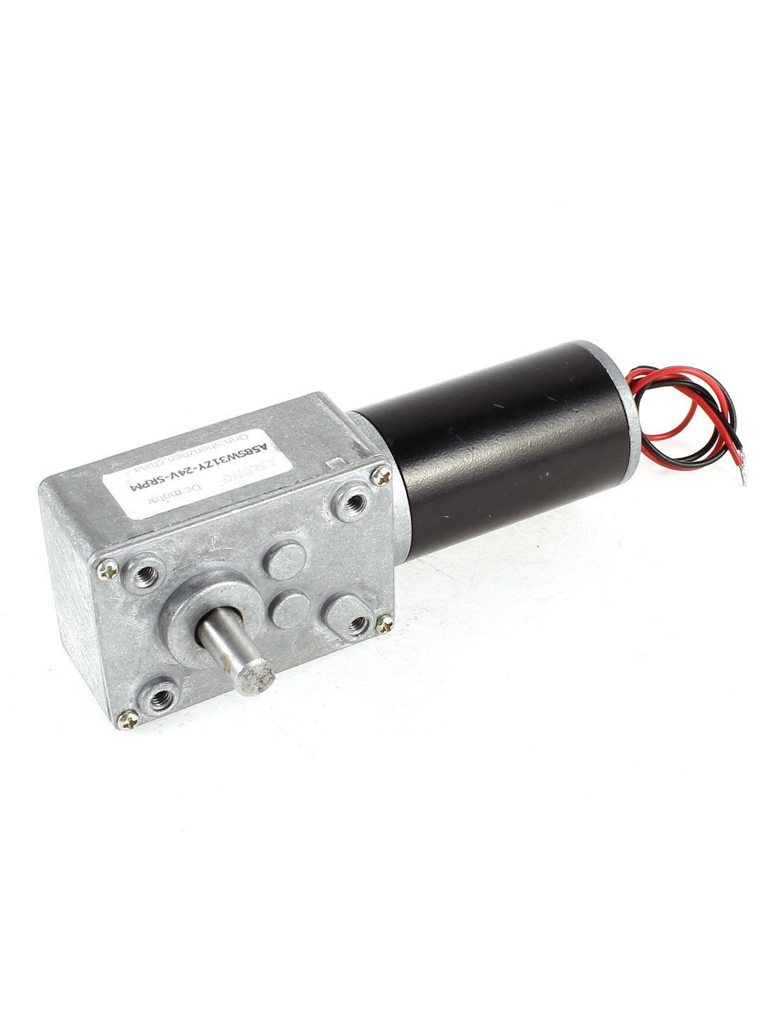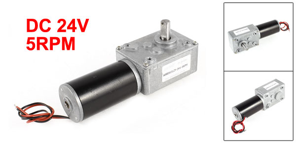 DetailsDC 24V 5RPM 8mm Dia Shaft Turbine Worm Geared Box Speed Reduction Electric Motor  Product Name DC Reduction Motor Model A58SW31ZY Working Voltage DC 12-24V Rated Voltage DC 24V Output Speed 5RPM Female Threaded Diameter 3.5mm Gearbox Size 58 x 40 x 27mm/ 2.3" x 1.5" x 1"(L*W*T) Motor Size 30 x 57mm/ 1.2" x 2.2"(D*H) Shaft Diameter 8mm/ 0.31" Shaft Length 15mm/ 0.59" Cable Length 19cm/7.5" Main Color Silver Tone Material Metal Weight 360g Package 1 x DC Reduction Motor