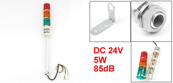Bulb Power 5W Decibels 85dB Light Color Red, Green, Yellow Light Size 30.5 x 5.2cm/ 12" x 2" (L*D) Cable Length(Approx.) 69.5cm/ 27.4" Installing Pole Size 1.5 x 25.8cm/ 0.6" x 10." (D*L) Installing Base Size 7.6 x 3.2 x 6.5cm/ 3" x 1.3" x 2.6" (L*W*H) Installing Hole Dia 9mm/ 0.35" Material Metal, Plastic, Electronic Parts Color As Picture Shown Total Weight 472g Package Content 1 x Industrial Signal Light