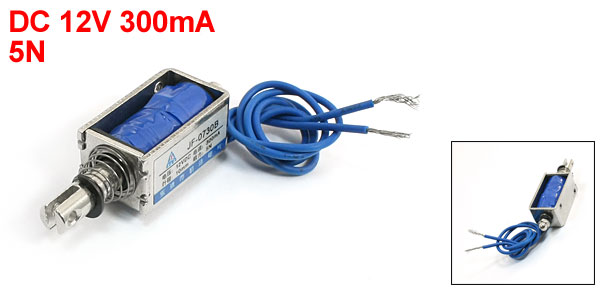 Product Name DC Solenoid Electromagnet Model JF-0730B Rated Voltage & Current DC 12V 300mA Action Form Push Pull Type Force 5N Stroke 6.5mm/0.26" Route 10mm/0.4" Body Size 30 x 17 x 14mm/1.6" x 0.8" x 1"(L*W*H) Cable Length 20cm/7.8" Material Metal, Electronic Parts Weight 32g Package Content 1 x DC Solenoid Electromagnet - Reviews