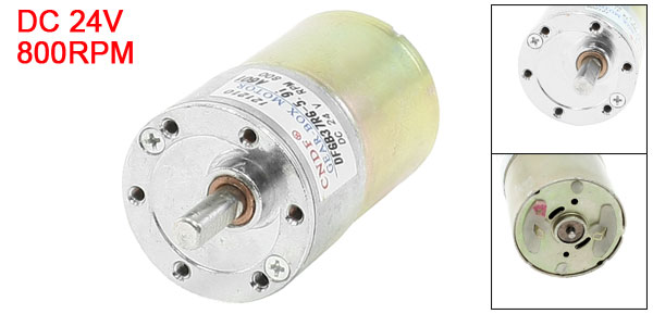 Product Name Gear Motor Rated Voltage DC 24V Rated Torque 13.14Kg.cm Rated Speed 800 RPM Shaft Size 15 x 6mm/0.6" x 0.24" (L*D) Motor Body Length 62mm/2.4" Motor Body Diameter 37mm/1.46" Thread Diameter 2.5mm/0.1" Total Length(Included Pin) 85mm/3.3" Pin Number 2 Pins Material Metal, Electronic Parts Color Gold Tone, Silver Tone Weight 193g Package Content 1 x Gear Motor - Reviews