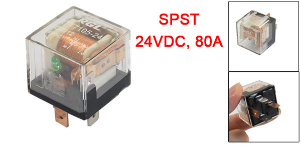 Product Name Car Relay Model RTT7105-24V Contact Type 1NO (SPST) Pin Number 4 Pin Rated Current 80A Rated Voltage 24VDC Indicator Light Color Green Total Size(Approx) 3.7 x 2.8 x 3cm / 1.47" x 1.1" x 1.2" (L*W*H) Mounting Rail Size 15mm / 0.59" External Material Plastic, Metal Main Color Clear Weight 35g Package Content 1 x Car Relay - Reviews