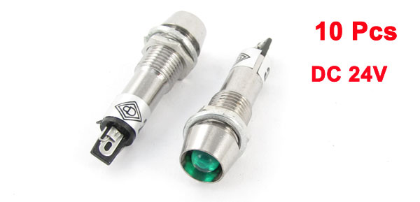 DC 24V 8mm Power Illuminated Green Light Signal Indicator Pilot Lamp 10 Pcs