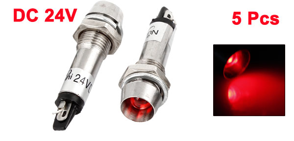 DC 24V 8mm Power Illuminated Red Light Signal Indicator Pilot Lamp 5 Pcs