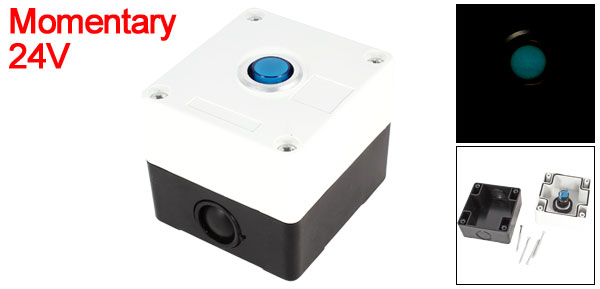 DC 24V Blue Lamp SPDT Momentary Action Push Button Control Station Box