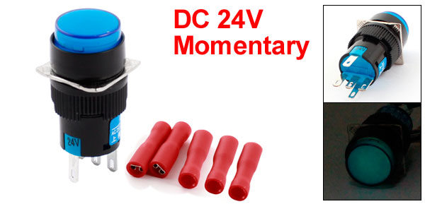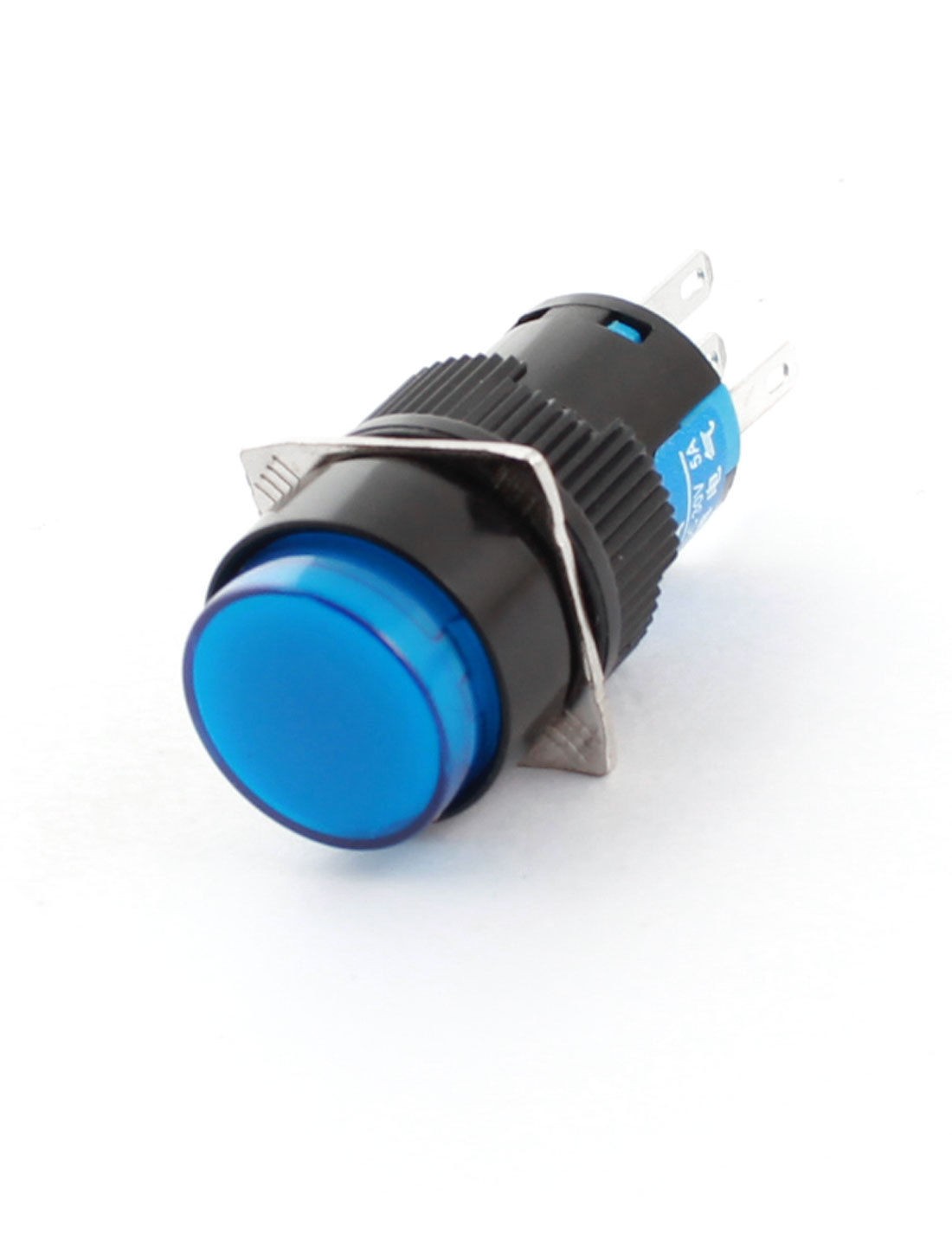 DC 30V 5ALight Voltage DC 24V Thread Dia 16mm/0.63" Total Size(Not Included Pin) 18.5 x 18 x 33mm /0.73" x 0.71" x 1.3" (L *W *H) Light Color Blue External Color Black, Blue, Red Material Plastic, Metal Net Weight 11g Package Content 1 x Round Head Push Button Switch