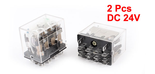 DC 24V Coil 4PDT 14-Pin Green LED Lamp General Purpose Power Relay 2 Pieces