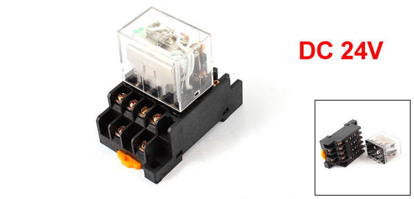 DC 24V Coil 4PDT 14 Pin Green LED Light General Purpose Power Relay w Socket