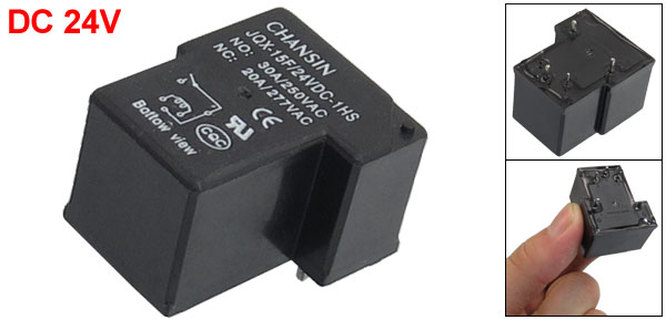 Product Name Relay Model JQX15F Contact Type NO NC SPDT Coil Voltage DC 24V Rated Load 30A 250VAC / 20A 277VAC Number of Pins 5 Size (Approx.) 3.2 x 2.7 x 2cm/ 1.3" x 1.1" x 0.8" (L*W*T)
