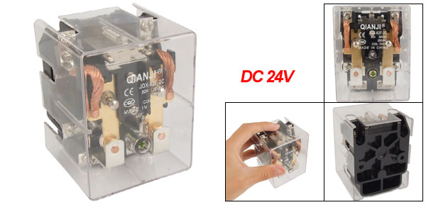 Product Name Power Relay Model JQX-62F-2C Coil Voltage DC 24V Contact Capacity 80A, 28V DC/250V AC Total Size 8.4 x 6.5 x 6.4cm/3.3'' x 2.6'' x 2.5'' (L*W*T) External Material Plastic Color Black, Clear Weight 327g Package Content 1 x Power Relay - Reviews