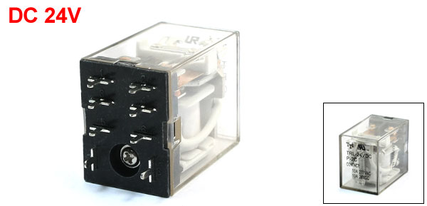 Product Name Electromagnetic Relay Model No. TRL-24VDC-P-2C Coil Voltage DC 24V Contact Capacity 10A 277VAC 28VDC Type DPDT Pin Quantities 8 Pin Size 4.5 x 1.4mm/0.18" x 0.55"(L*W) Body Size (Approx.) 3.5 x 2.1 x 2.7cm/1.4" x 0.8" x 1"(L*W*H) Shell Material Plastic Main Color Clear , Black Net Weight 36g Package Content 1 x Electromagnetic Relay - Reviews