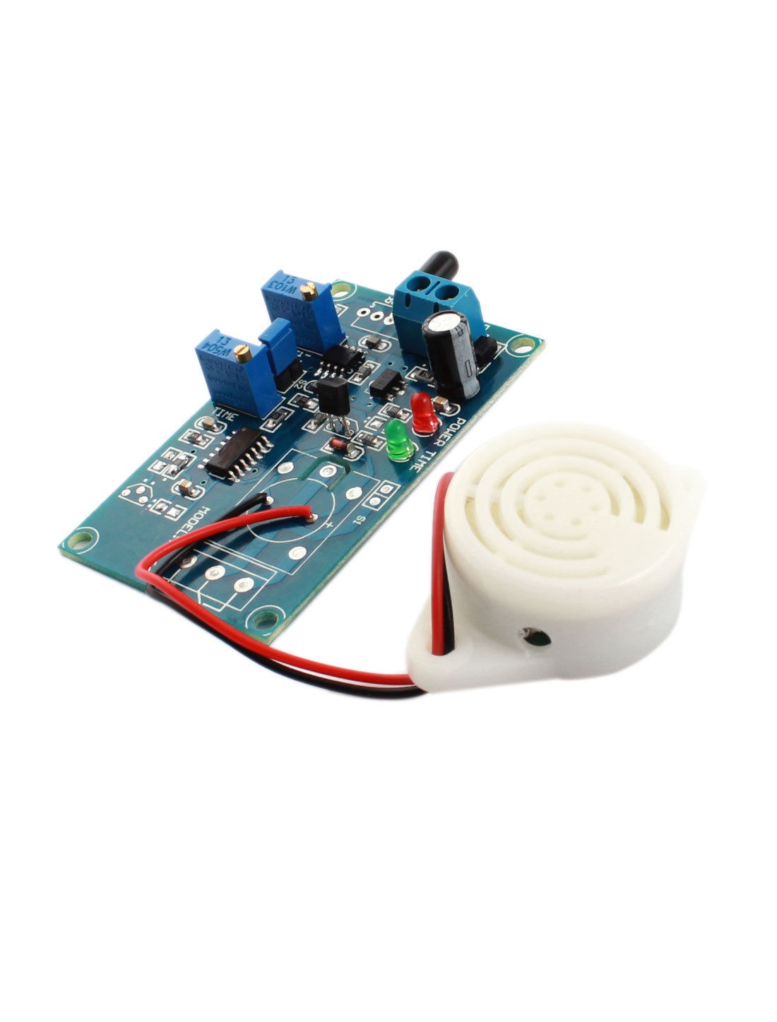Product Name Infrared Receiver Delay Alarm Module Working Voltage DC 24V Delay Time 0-20S(0-200S) Buzzer Type Piezo Buzzer (Self-drive type) Fixing Hole Dia 3mm/0.12" Fixing Hole Center Distance 59 x 33mm/2.4" x 1.3"(L*W) Total Size 6.4 x 3.9 x 1.2cm/2.5" x 1.6" x 0.47"(L*W*H) Wire Length 22cm/8.7" Materials PCB Main Color Green Net Weight 21g Package Content 1 x Infrared Receiver Delay Alarm Module