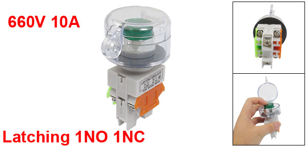 Product Name Pushbutton Switch Action Type Latching Button Type High Flat Button Contact Type 1NO 1NC(DPST) Ui(AC-15) 660V Ith(AC-15) 10A Lamp Voltage 24V Terminals Quantity 6 Screw Terminals Thread Diameter 24mm/0.94" Button Diameter 24mm/0.94" Protection Cover Diameter 50mm/1.97" Suitable Board(Max.) 5mm/ 0.197"(Adjustable) Overall Size 70 x 50 x 93mm / 2.76" x 1.97" x 3.66" (L*W*H) Material Plastic, Metal, Electric Parts Lamp Color Green Color Gray, Transparent, Green Net Weight 69g Package Content 1 x Pushbutton Switch - Reviews